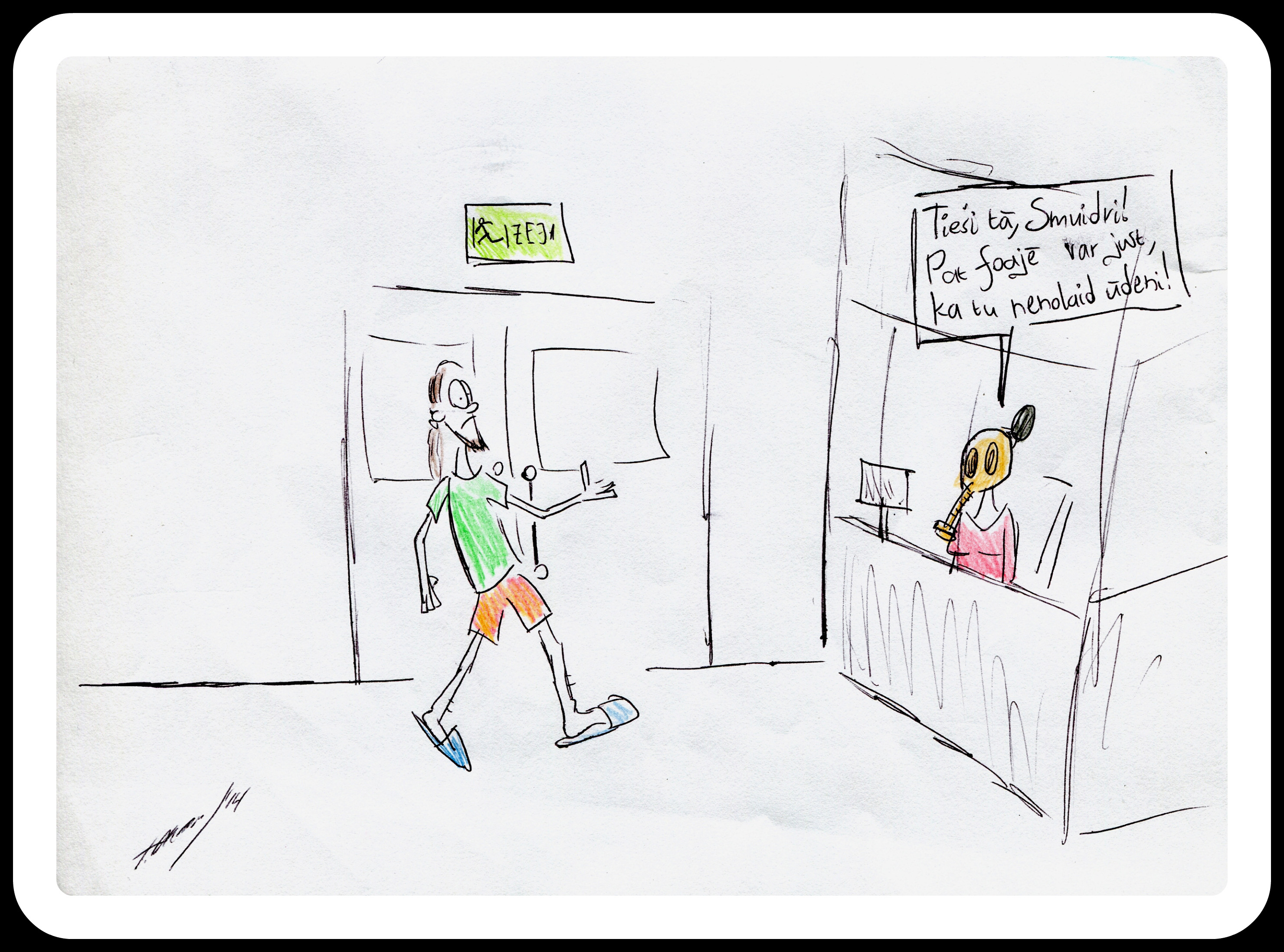 Humoristiskajos zīmējumos atainotas divas personas - students Smuidris un komandante Raganoviča.