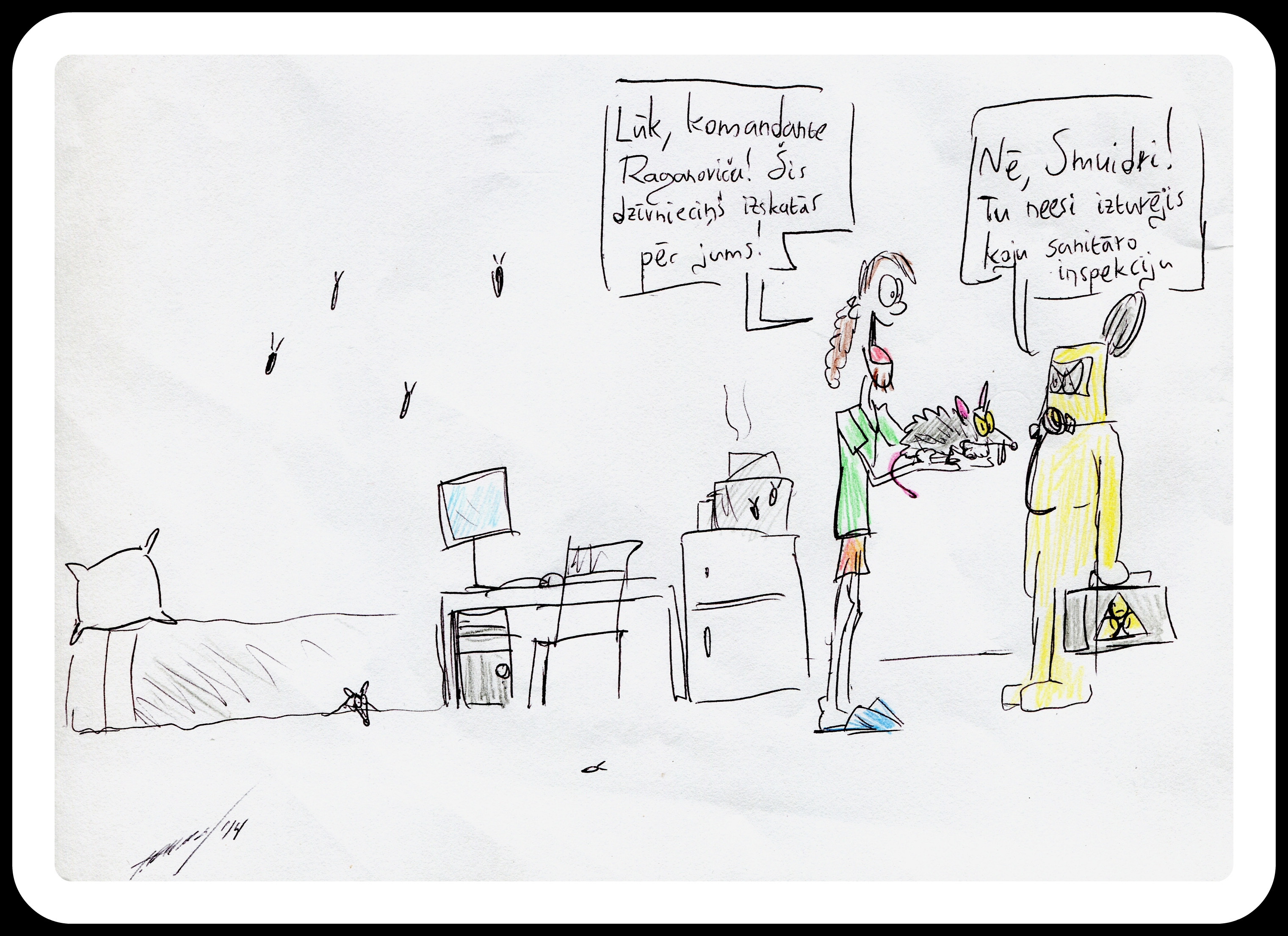 Pēc Latvijas Universitātes Studentu padomes iniciatīvas, lai pievērstu studentu uzmanību sadzīviskām problēmām, Latvijas Universitātes Fizikas un matemātikas students Toms Akmens ir izveidojis karikatūru sēriju, liekot tās vērotājiem ne tikai smieties un paskatīties uz studentu dzīvi dienesta viesnīcās no neparasta un nedaudz ironiska skatpunkta, bet arī aicinot studentiem padomāt par to, kā viņi dzīvo un vai viņu ikdienas paradumi netraucē apkārtesošajiem cilvēkiem.